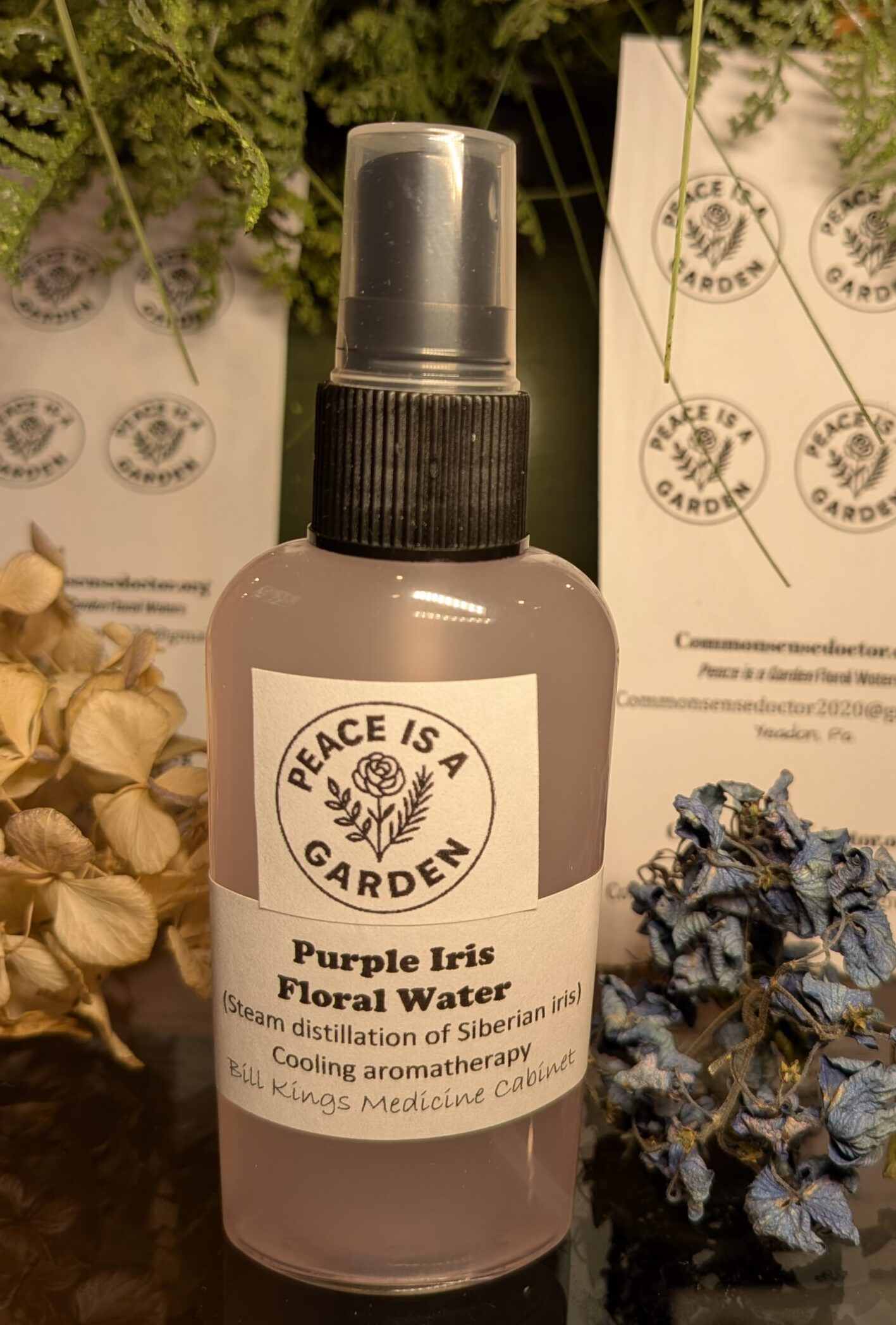 Iris flowers are a well known spring beauty, but most of us don’t have a a good sense of the aroma of irises.ย They are delicately fragrant, and unfortunately it is difficult to perfectly steam distill the scent from the flowers, so this is the one floral water that I add a few drops of other flower essential oils, honey suckle, violet, and jasmine, to recreate the gentle fragrance of purple iris.ย Until I grow a few more irises, there are only a handful of bottles each spring, so send me a line if you like it.